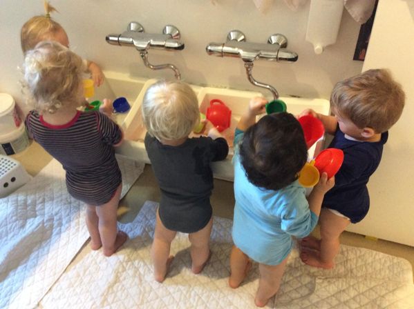 I bedes spritte jeres egne hænder, og vaske jeres børns hænder på badeværelset, før I går ind på stuen. Det anbefales ligeledes, at I spritter jeres hænder af, før I forlader vuggestuen.